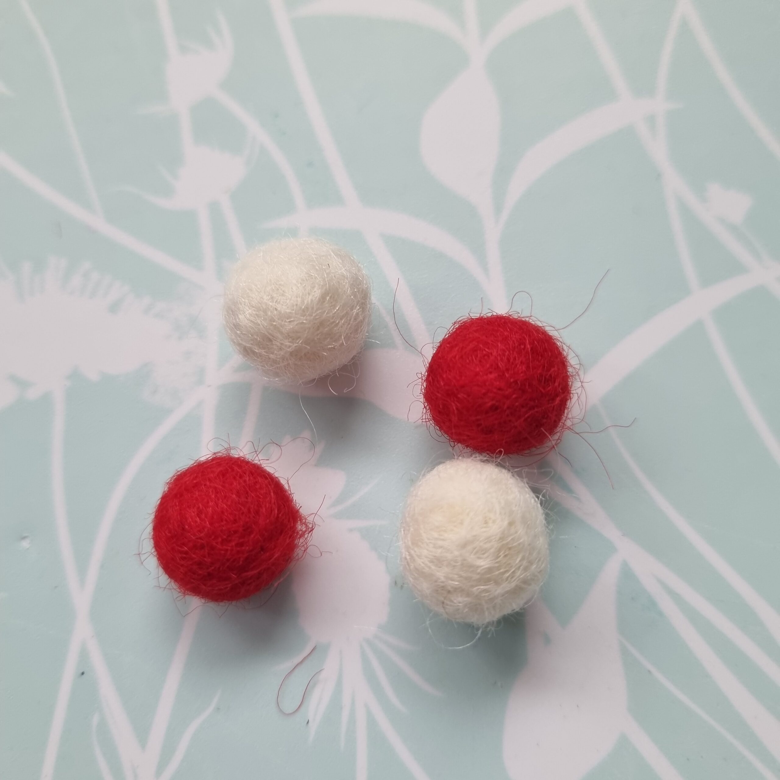 - 12 viltballetjes in traditionele kleuren rood en wit; zie foto